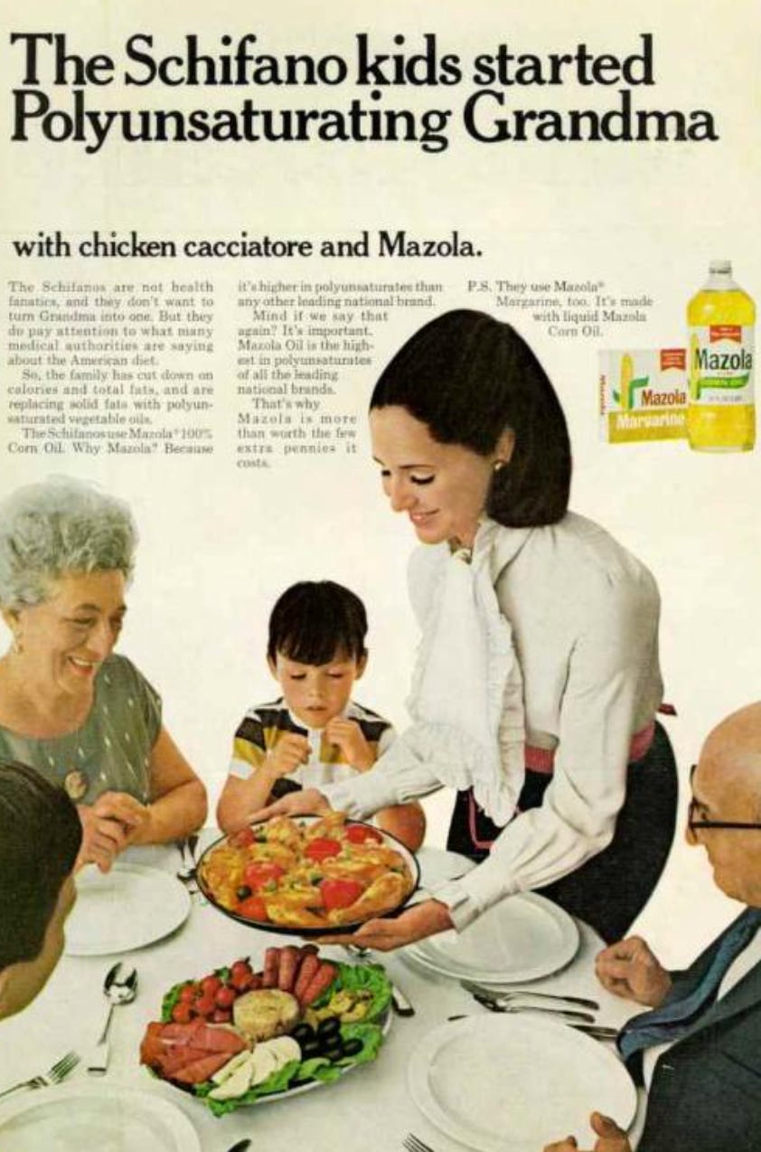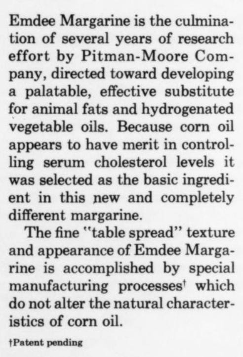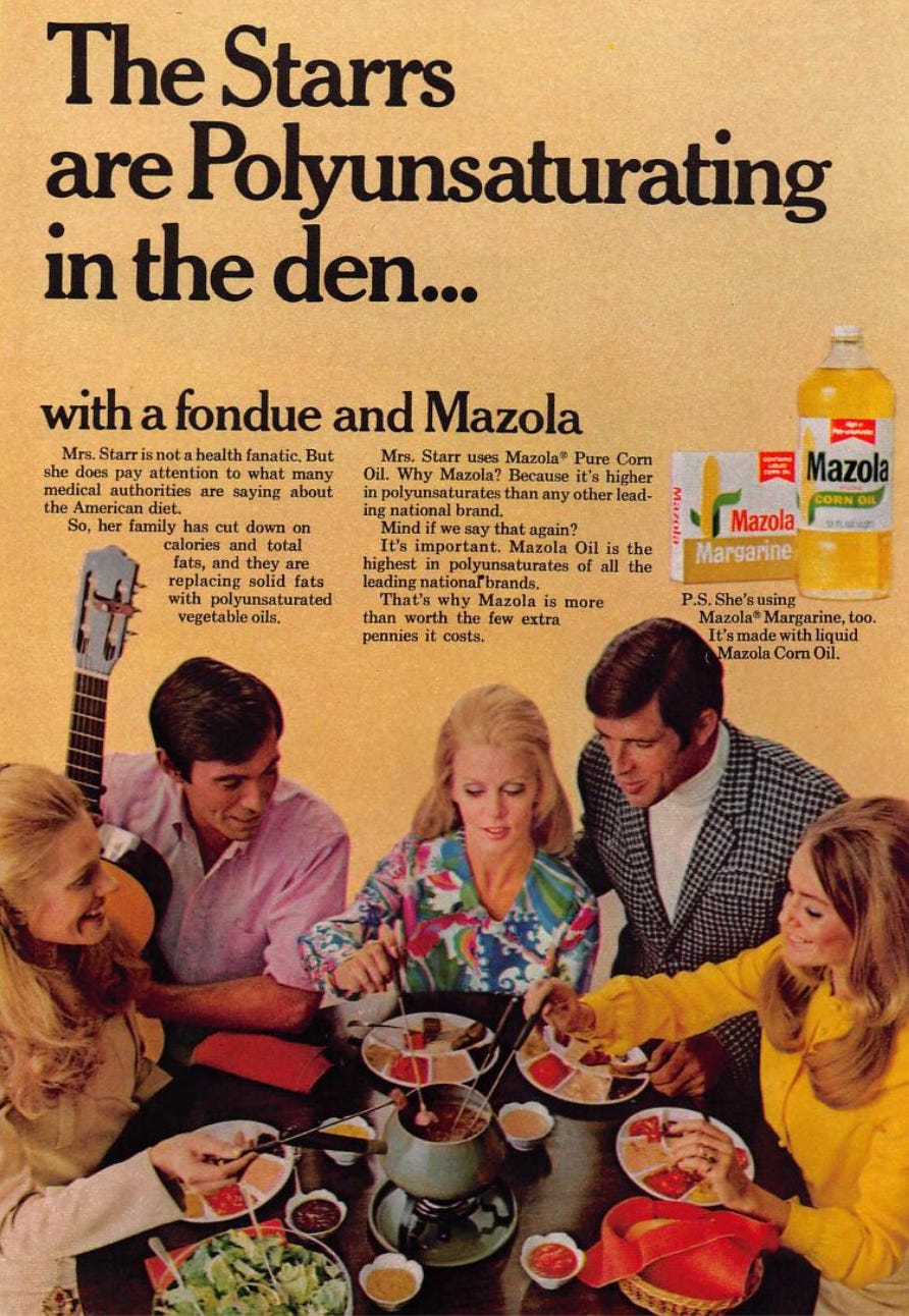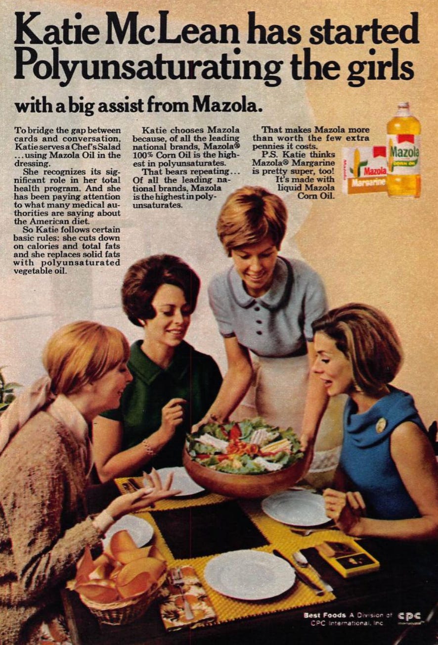 Either they thought the Mazola Margarine had better sensory characteristics and was better for blinding the subjects, Mazola was simply better at supplying the volume they needed, or they did it because they valued their relationship with Mazola, who was also providing the liquid corn oil that constituted the top oil ingredient of the seed oil diet.