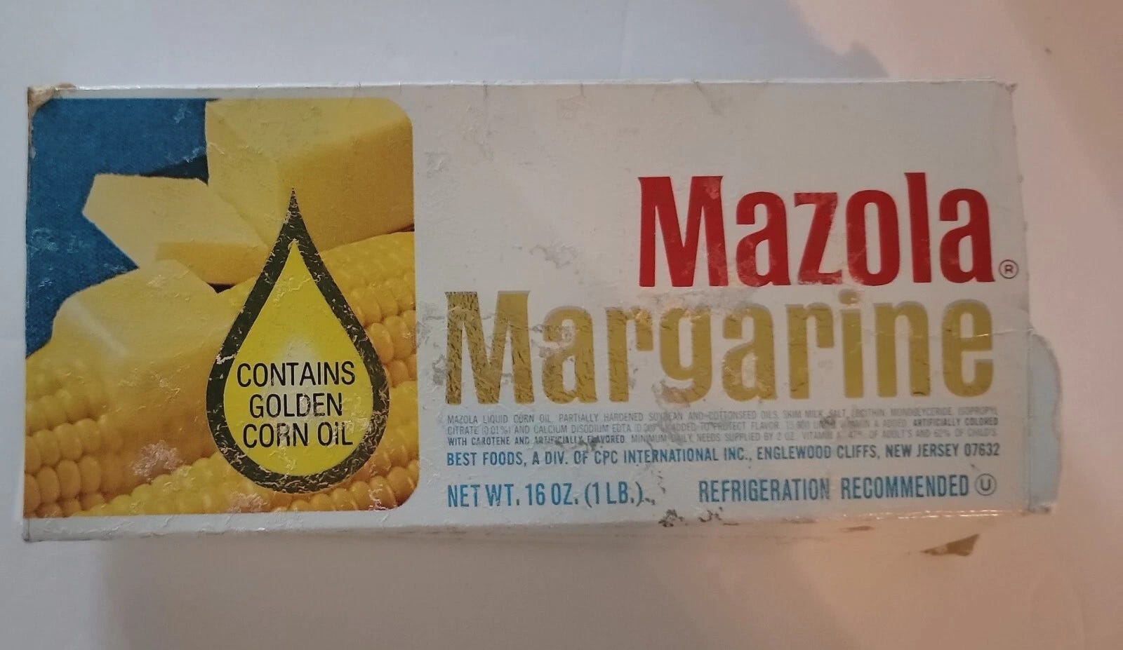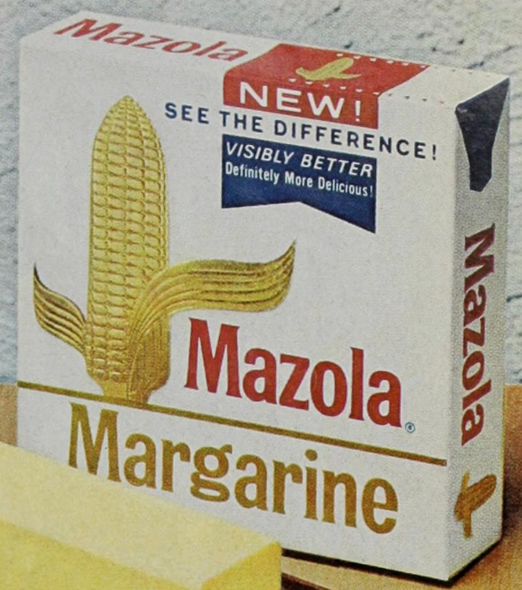 Together with the data on historical availability, this suggests that Emdee was used in the first year because it was the only margarine based on unhydrogenated corn oil on the market in September of 1959, while they switched to Mazola in September of 1960 when it became available.