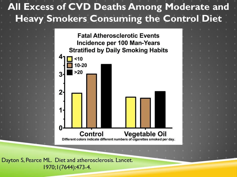 In fact, the excess atherosclerotic death was found exclusively among those in the control diet smoking more than ten cigarettes per day: