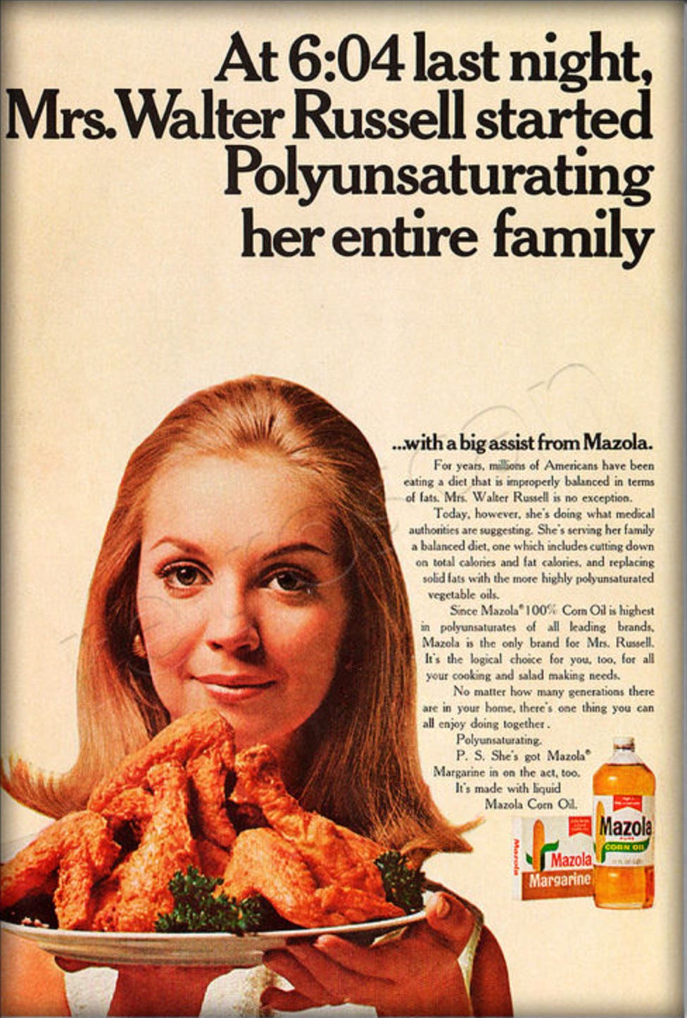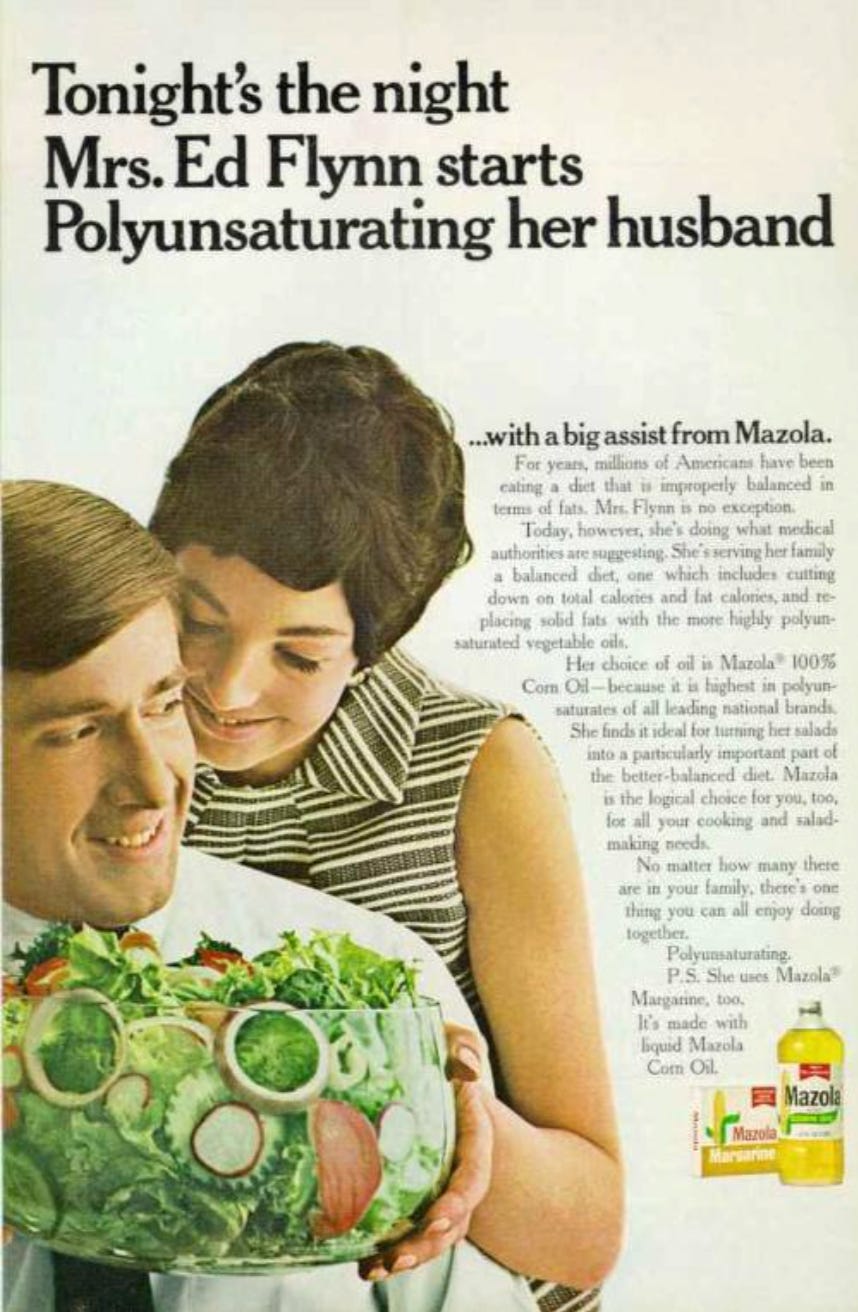 Mazola advertised their margarine as being 19% saturated, 53% monounsaturated, and 28% polyunsaturated.